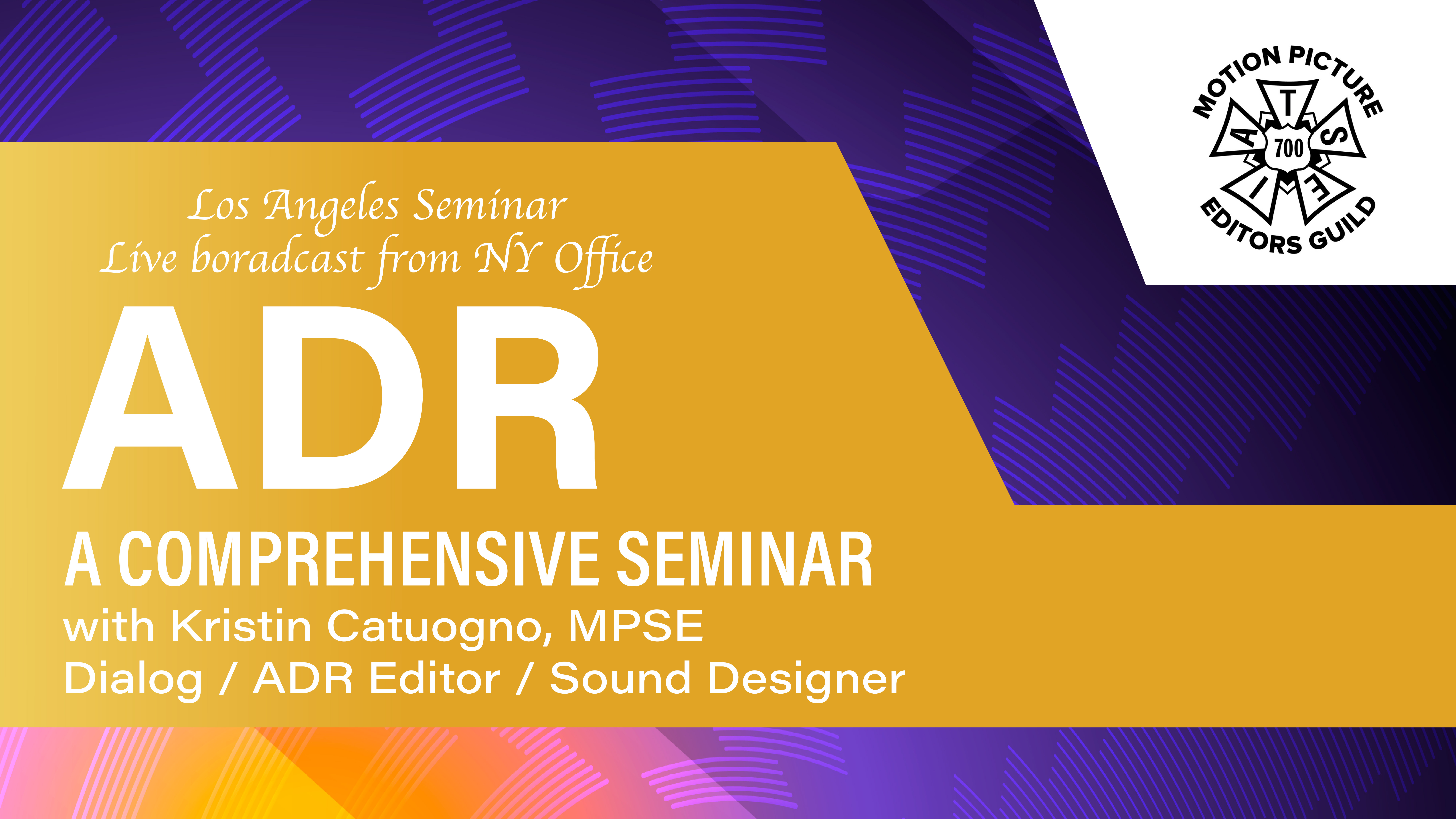 Thursday, November 06, 2025 Seminar "ADR: A Comprehensive Seminar" Thursday, November 6, 2025 4:00 PM - 5:30 PM Training/Technology Los Angeles Learn the ins and outs of a professional ADR workflow for film and television. Live broadcast from NY.