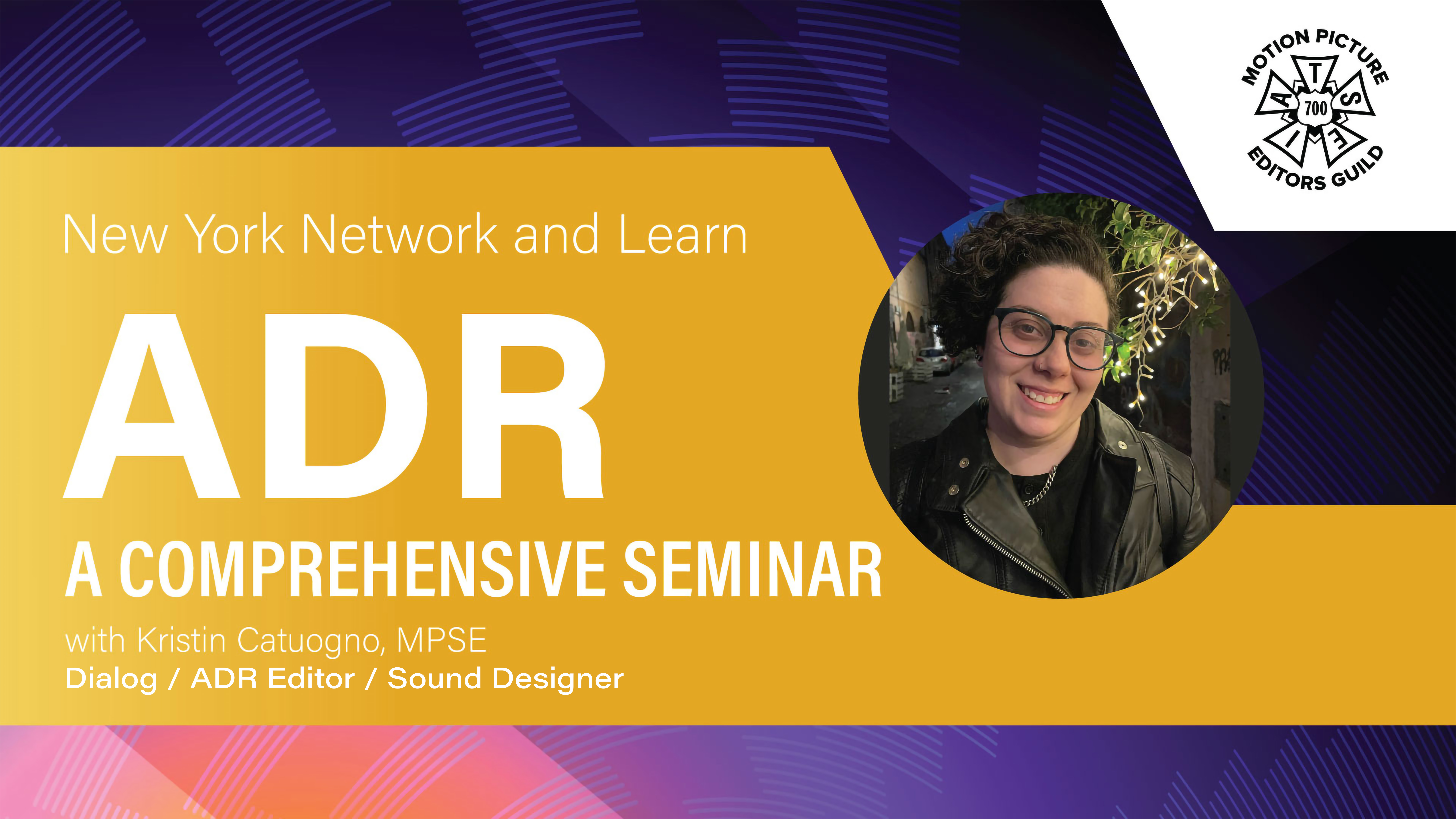 Thursday, November 06, 2025 Network and Learn "ADR: A Comprehensive Seminar" Thursday, November 6, 2025 6:00 PM - 8:30 PM Training/Technology New York Learn the ins and outs of a professional ADR workflow for film and television.
