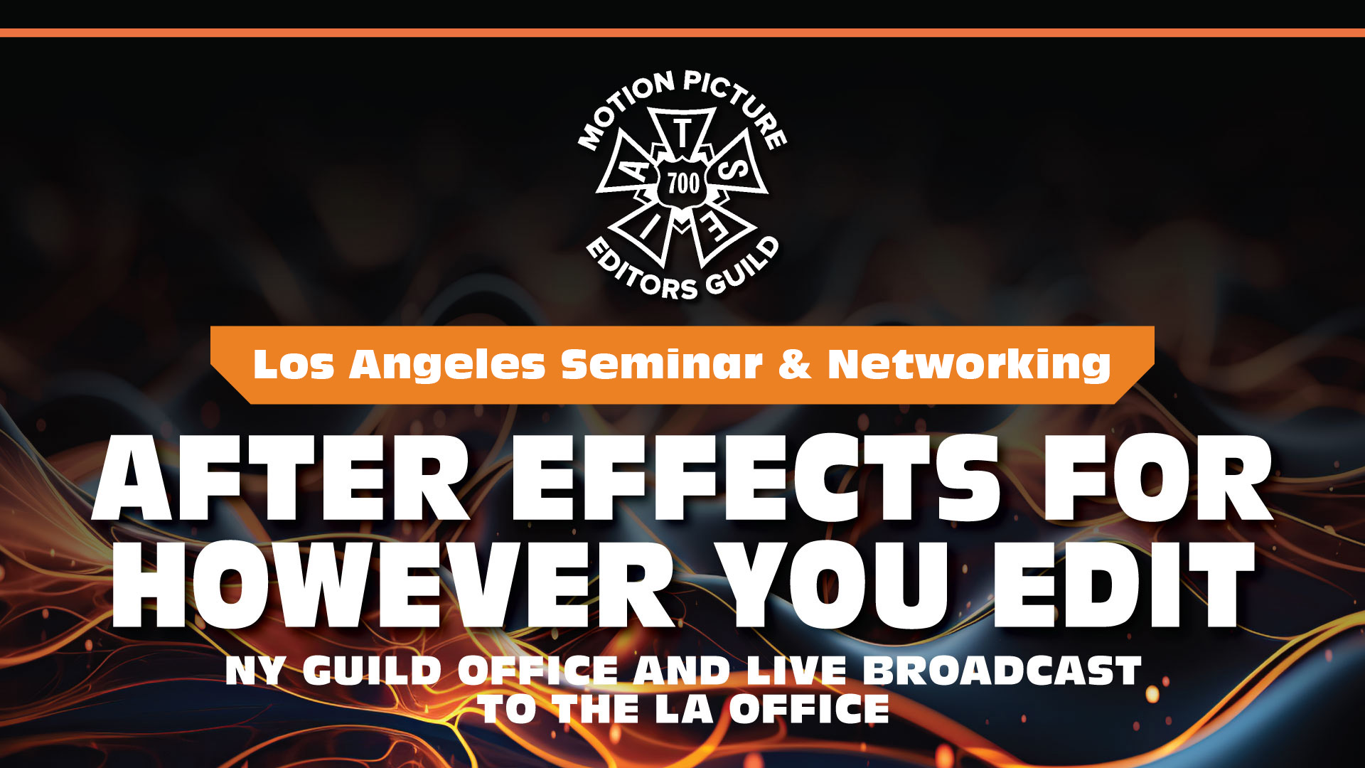 Thursday, October 16, 2025 Seminar & Networking - After Effects for However You Edit Thursday, October 16, 2025 4:00 PM - 6:30 PM Training/Technology Los Angeles Learn and network as you dive into After Effects techniques—from crafting seamless temp VFX to building dynamic motion graphics that elevate your edit...
