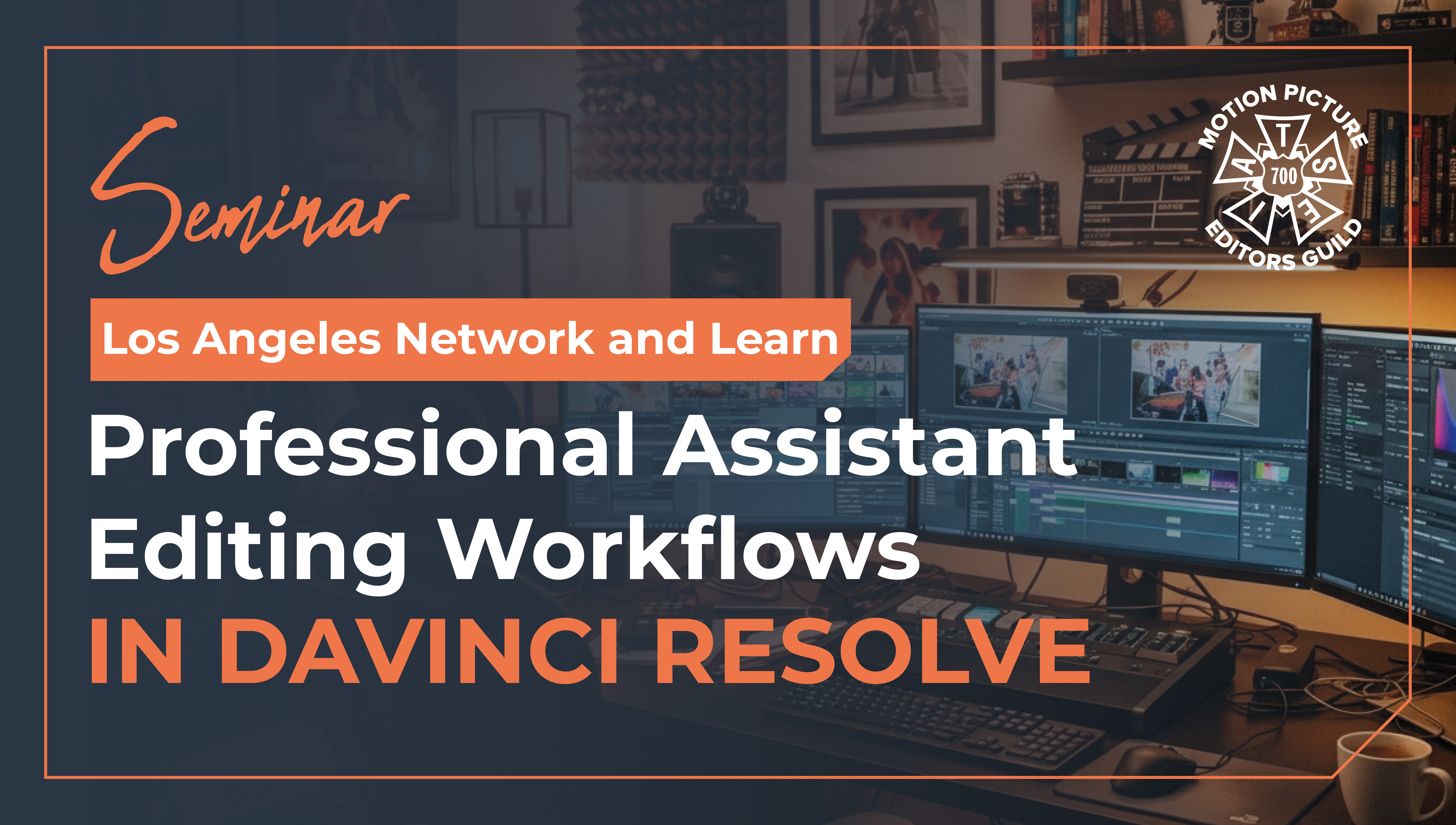 Sunday, December 07, 2025 Network & Learn: Seminar - Professional Assistant Editing Workflows in DaVinci Resolve Sunday, December 7, 2025 10:00 AM - 1:00 PM Training/Technology Los Angeles Network and learn. This class is for picture editorial professionals who have familiarity with working on long-form projects like Feature Films and Te...