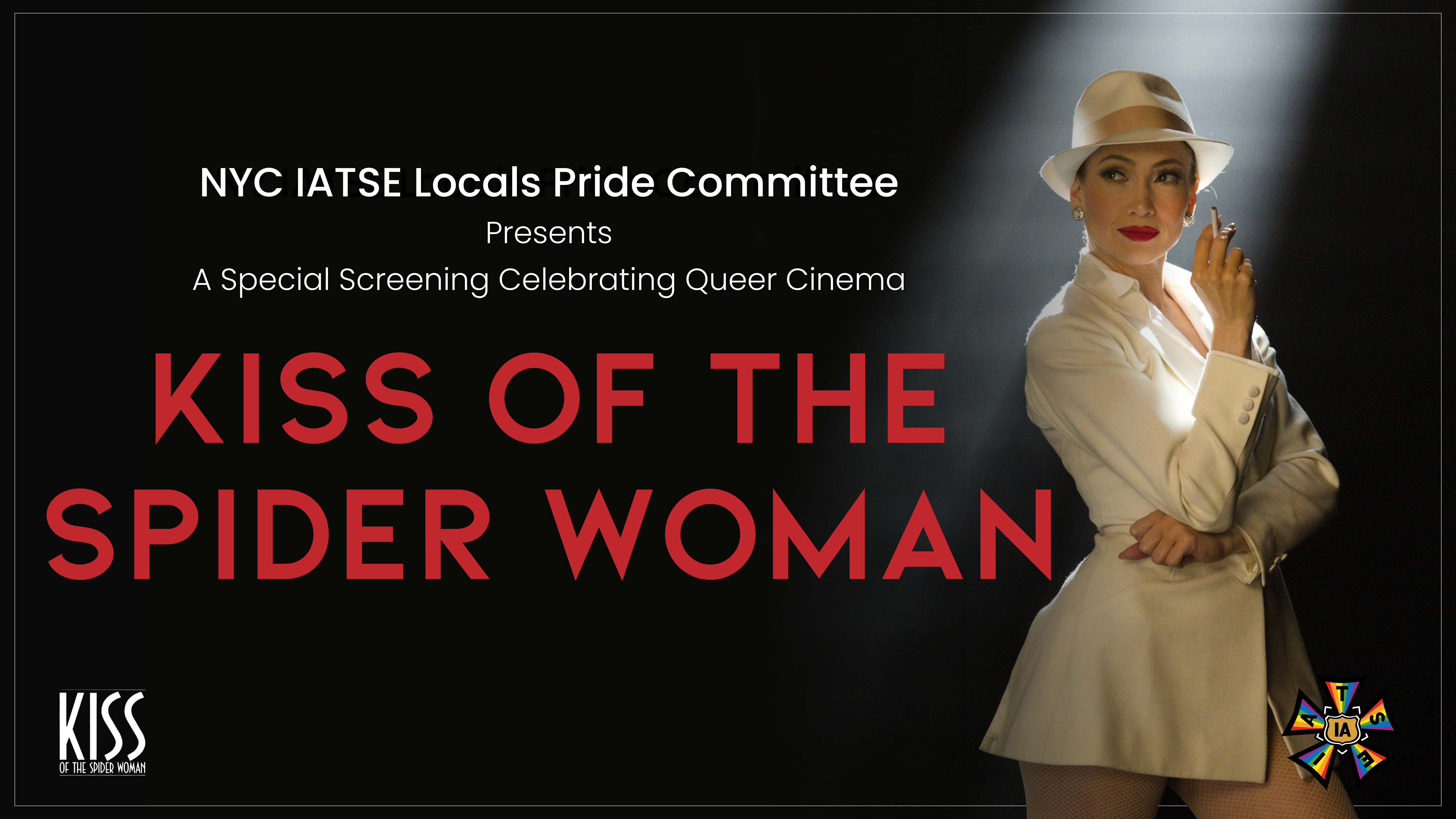 Monday, October 20, 2025 "Kiss of the Spider Woman" - NYC IATSE Locals Pride Special Screening Monday, October 20, 2025 7:00 PM - 10:00 PM Screening New York You and a guest are invited to a special screening celebrating queer cinema. Presented by NY IATSE Locals Pride Committee. Q&A will follow.