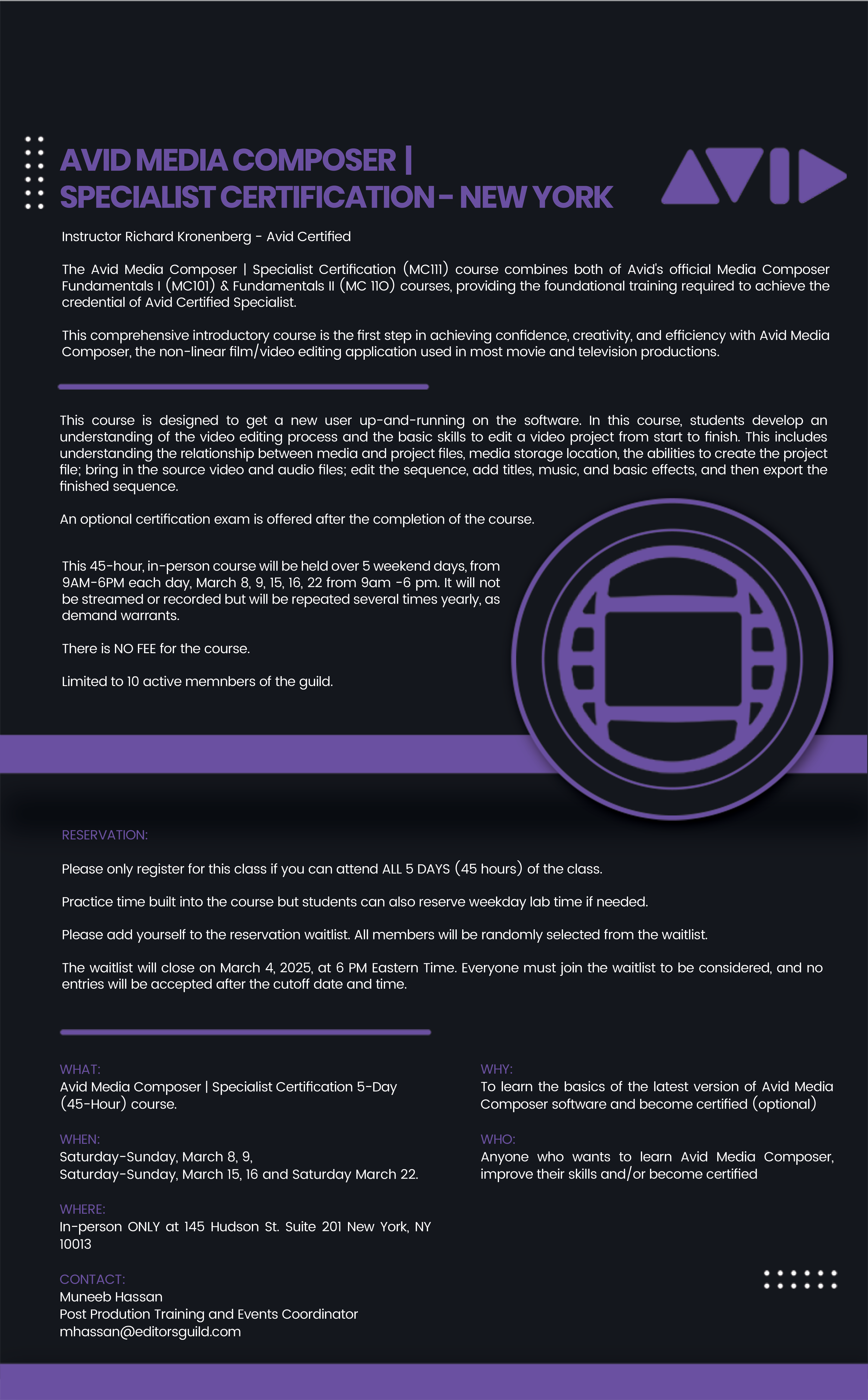 Enrollment in this class will be determined by random lottery. Please place yourself on the Waiting List, by clicking ‘Add Me to the waiting list’ above, and you will be entered into a randomized lottery of the ten spaces available. Deadline to enter the lottery is March 4th at 6:00pm EST.