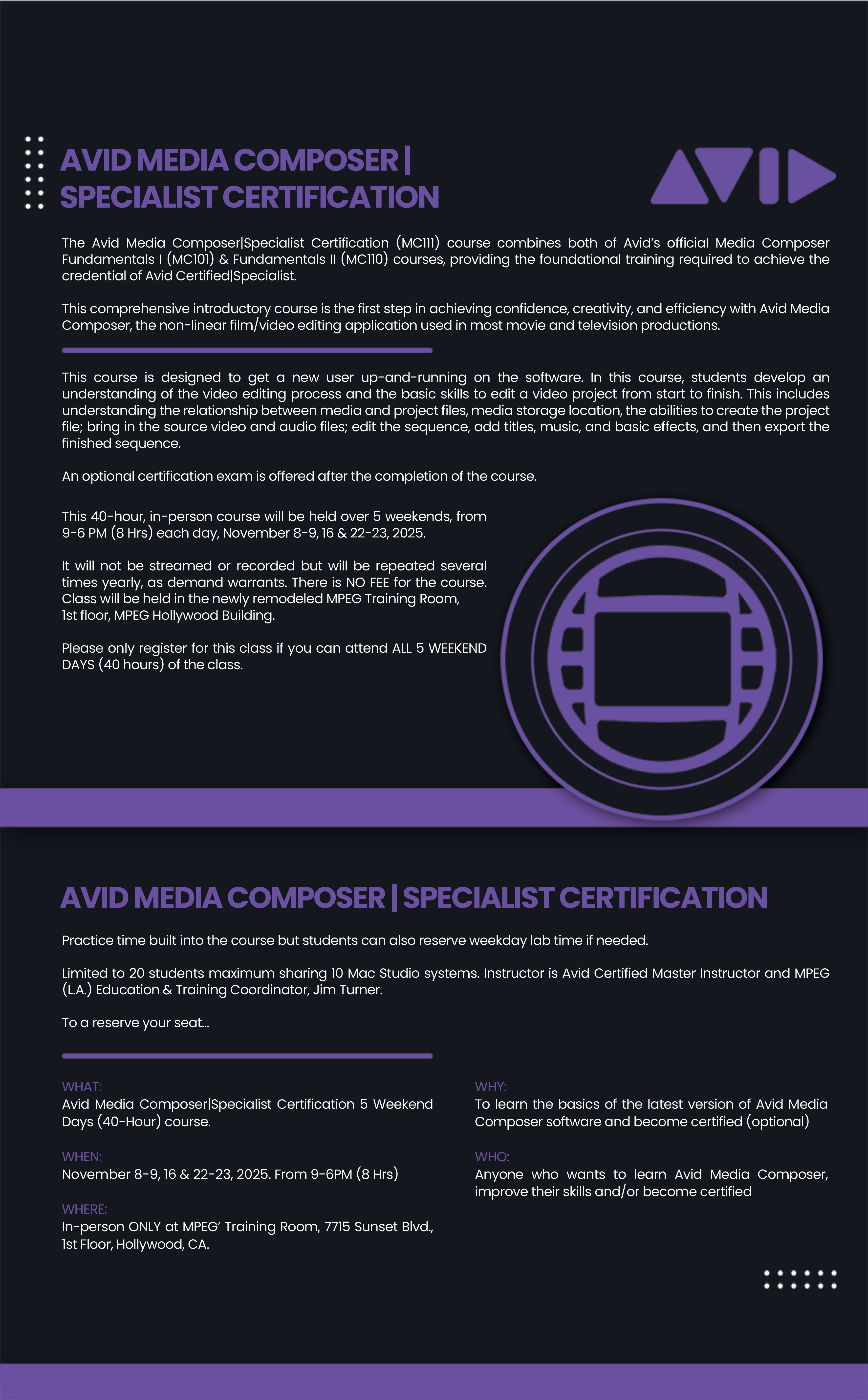 Avid Media Composer | Specialist Certification (5-Weekend Days)