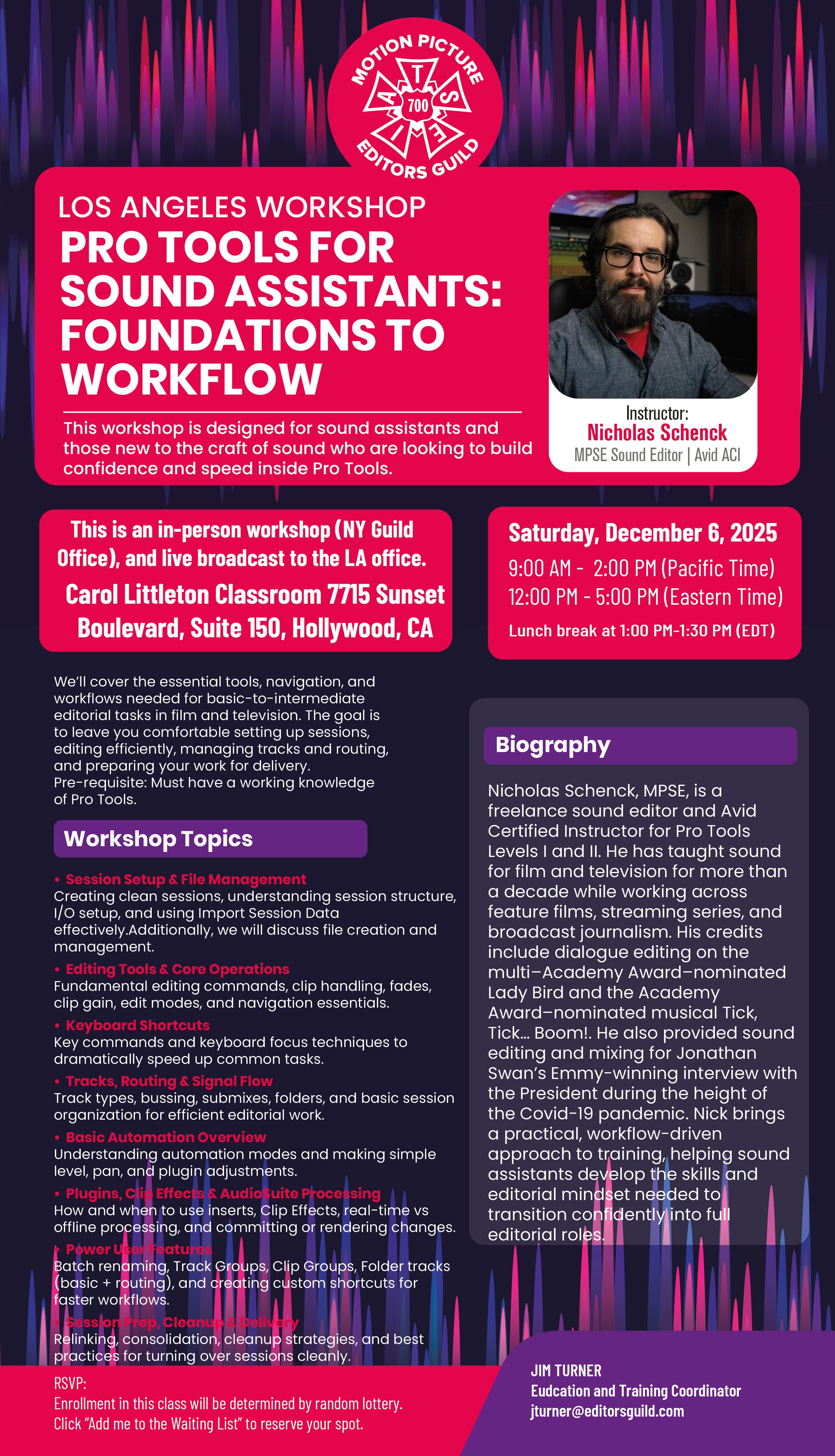 Workshop - Pro Tools for Post Sound: Assistant Workflow Training