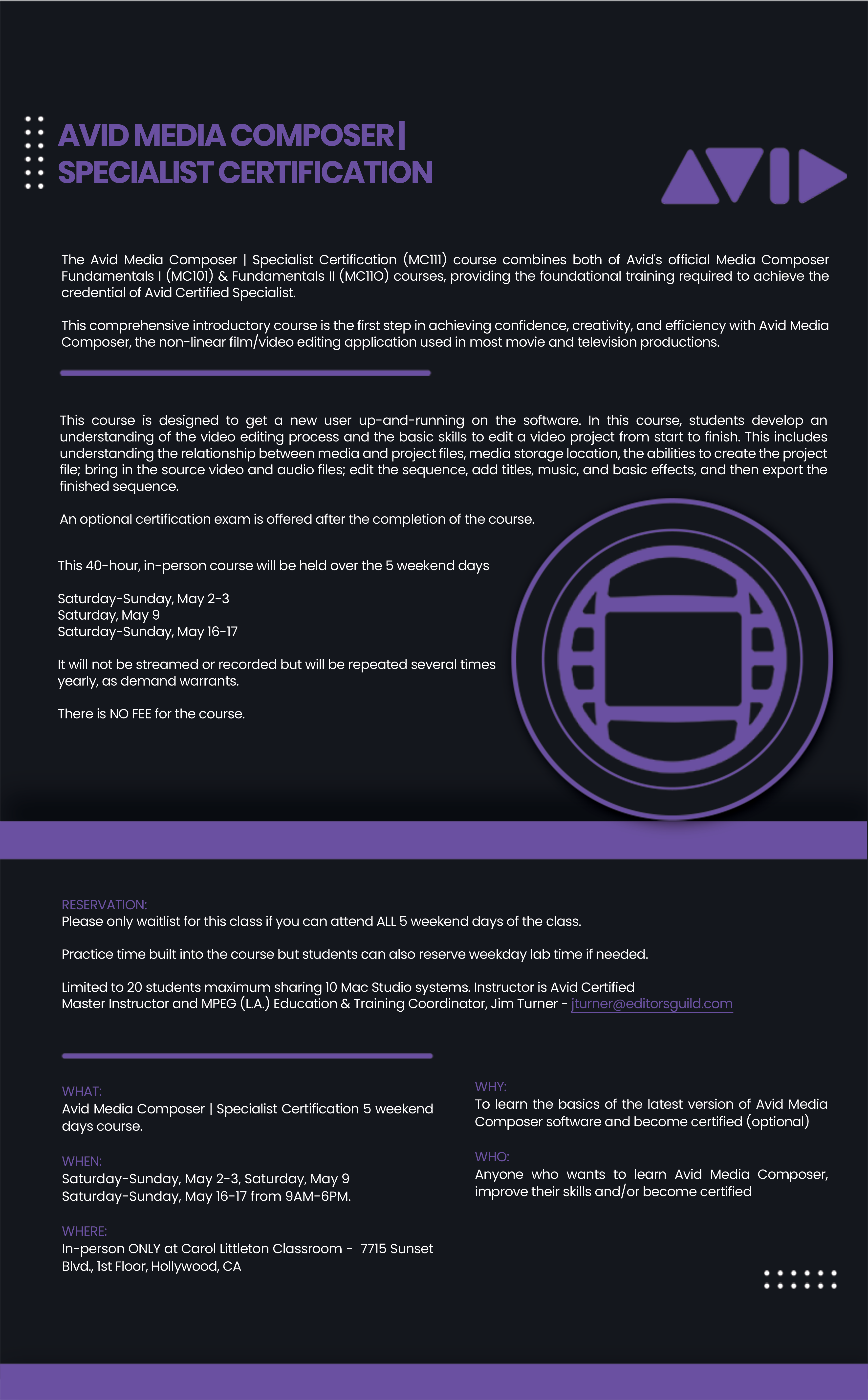 Avid Media Composer | Specialist Certification (5-Weekend Days)