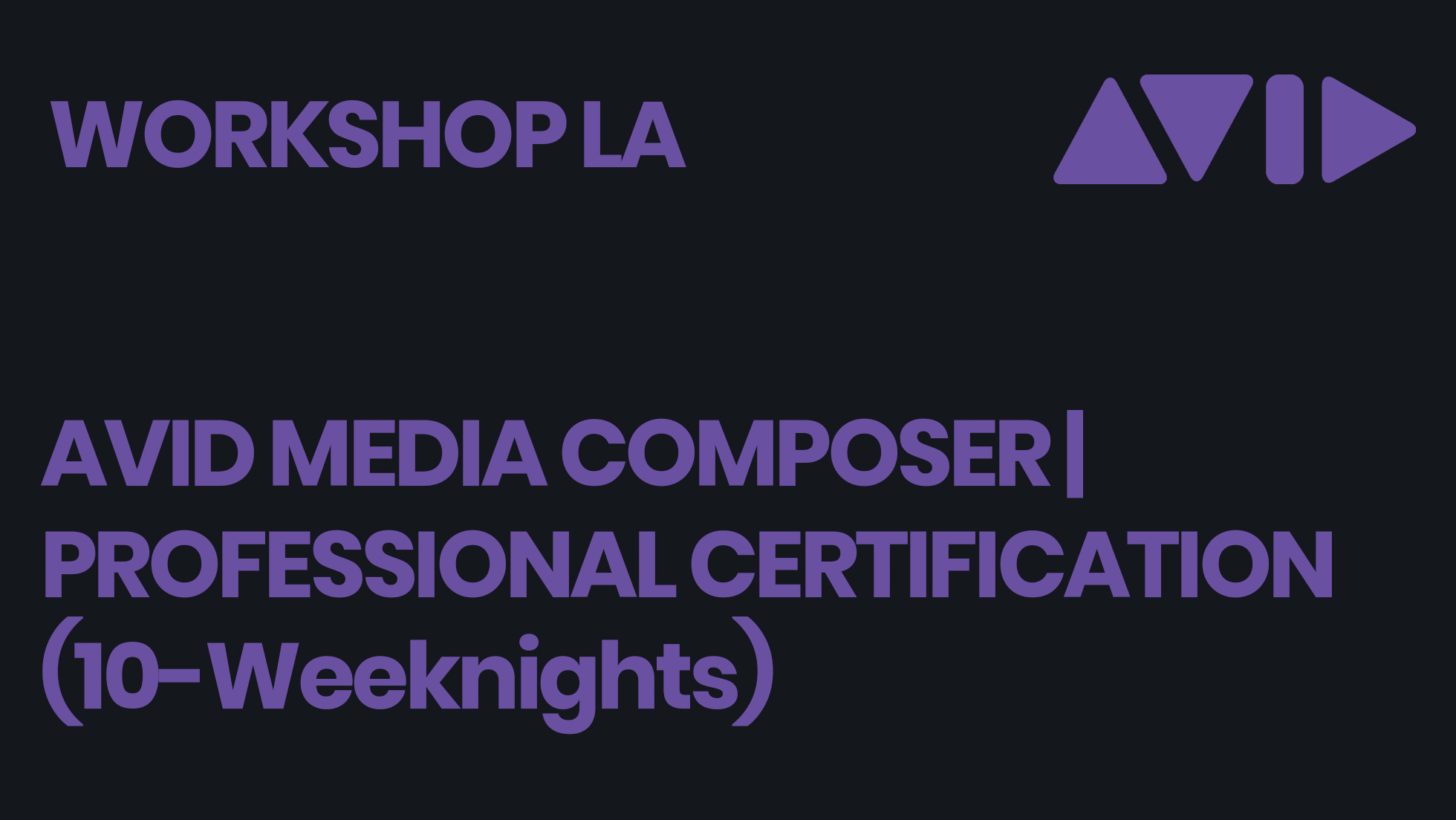 Tuesday, February 10, 2026 Avid Media Composer | Professional Certification (10 Evening Workshop) Tuesday, February 10, 2026 6:00 PM - 10:00 PM Training/Technology Los Angeles Get Certified! This is a 10-evening (40-hour) in-person training at MPEG LA. Please read the full invite.