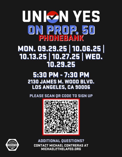In the upcoming special election in California, the California Federation of Labor Unions and the Los Angeles County Federation of Labor are backing Proposition 50, the Election Rigging Response Act. Prop 50 is a measure that would temporarily redraw congressional district maps in order to counteract the Trump administration’s efforts at gerrymandering in Texas and elsewhere. Trump is trying to move the goalposts in order to maintain a stranglehold on Congress, so that he can rely on a rubberstamp for his assaults upon workers’ rights. Unions are backing Prop 50 because it gives us a chance to elect more pro-labor representatives to push back against the administration’s anti-union, anti-worker agenda.